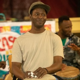 Sana Camara is danser, drummer, acrobaat en één van de vaste percussionisten bij de danslessen van Fanny Heuten.